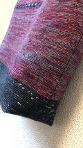 見る角度によって玉虫色に変わるような布地を裂き織りしてみました。