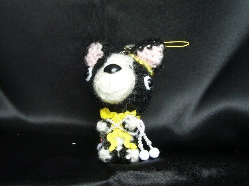 ボストンテリア♡お願いわんちゃんストラップ♡可愛い犬編みぐるみ