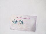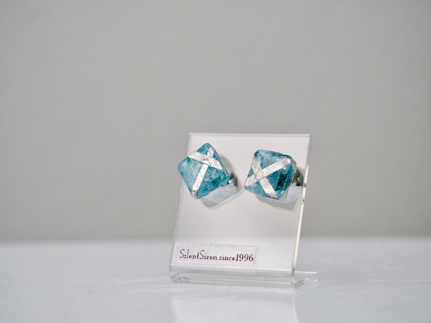 涼しげなアクアブルーのスクエアのビンテージガラスパーツに