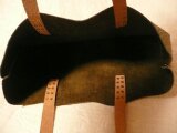 持ち手は厚さ約2ミリのサドルレザーでシンプルですが、強度もあり、経年変化も期待できます。