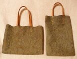 木の肌のような森の緑のようなやさしいフォルムの薄いまちの丈夫な手縫いの手提げバッグです。