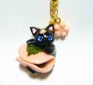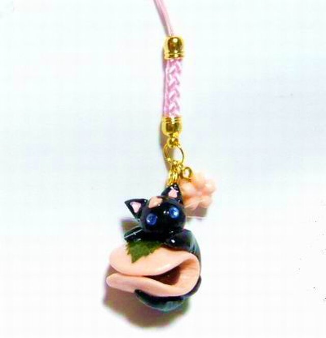 にゃんこのしっぽ○桜餅ストラップ〇桜〇黒猫〇猫
