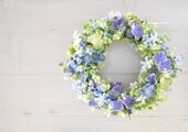 リース素材:アーティフィシャルフラワ-(造花):あじさい・アストランティア・ベルフラワー・ブルースター・ユーカリ、など。