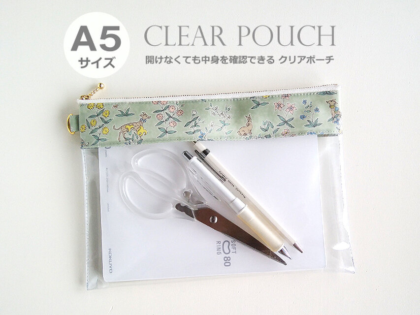 【注意】クリア生地部分に小さな傷、折れがある場合もございます。縫い終わりに生地を返す工程で傷や折れが出来てしまう場合があるようです。予めご了承下さいませ。