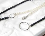 本真珠(淡水)と、オニキスを使った180cmのロングネックレスです。3連ネックレスとして使えます。