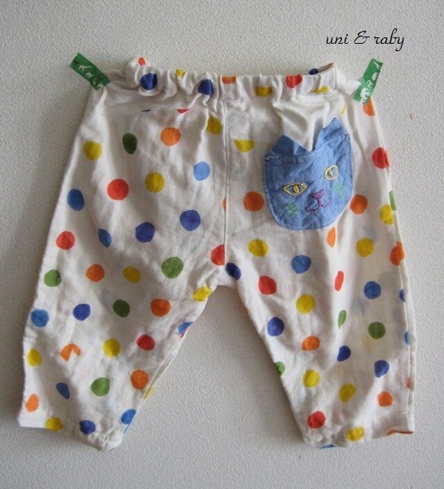 (受注生産)カラフルドットのネコぽっけパンツsize80