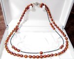 本真珠(淡水)とブラックスピネルの2連ネックレスです。照りがとても強く、縞もほとんどなく滑らかな表面の真珠を使っています。