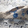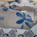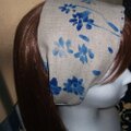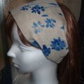 ブルーの絵の具で落書きしたような柄の麻のヘアバンドです。