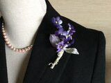 コサージュがあまり主張しない大きさで小さなスミレです。