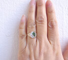 商品画像や説明の通りで、素敵なリングでした。氷ひすいの優しい色と、アームは実は仏さまがいるという、個性的なデザインに惹かれました。また、仕上げの艶消し加工が本当に綺麗です。指にスッと馴染み着け心地も良いです。たいへん気に入りました。大切にします。丁寧なご対応もありがとうございました。