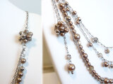 一点もの★本ロジウム使用 パールとガラスのデザイニングネックレス(ブラウン)