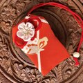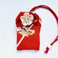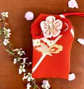 素敵なお守り袋が2つ届きました。 絞りの生地の色合いと大輪の花がとても華やかでキュートです。 白梅のものは、奥ゆかしさと気品を感じました。 どちらも大変気に入りました。大切に使わせていただきます♪