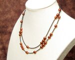 本真珠(淡水)とブラックスピネルの2連ネックレス(ラインストーン付きマグネット・クラスプ、44cm、メタリック・ブラウン)