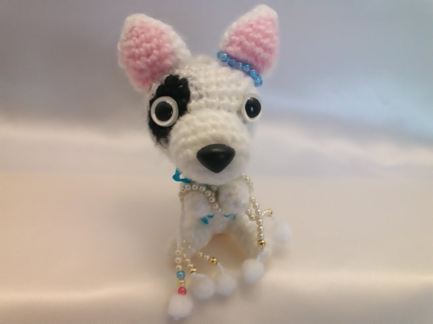 お願いわんちゃん♡ブルテリアの人形♡手作り犬の編みぐるみM人気