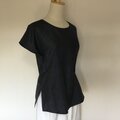 奄美の大島紬のお着物を解き洗い張りし、フレンチスリーブブラウスを縫いました。