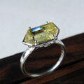 六角形の結晶が特徴的な、虹の見えるアパタイトの原石を使用したリング。