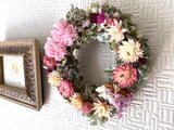 母の日のギフトにエレガントなパステルカラーの上品なリースです。