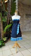 紺とブルーのタータンチェックの生地は、タイプライターという密に折られた高級感のあるコットン生地を使いました。