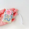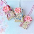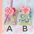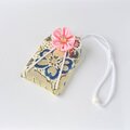 素敵なお守り袋が2つ届きました。 絞りの生地の色合いと大輪の花がとても華やかでキュートです。 白梅のものは、奥ゆかしさと気品を感じました。 どちらも大変気に入りました。大切に使わせていただきます♪