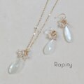雫型の天然石ムーンストーンをメインにボタン型の天然石クォーツをミックスしたピアスです。
