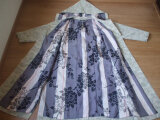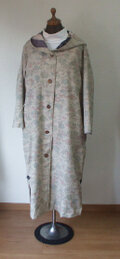 春らしい白っぽい紬のフード付きコート 絹 在庫処分