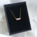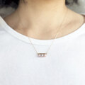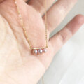 小さなピンクパール3粒をライン状に並べてネックレスを作りました。