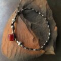 身に着けるほどに輝きが増すチンシルバーに 、茶色の紐と朱赤のミゾラムカーネリアンが程よい落ち着きを添えてくれます。