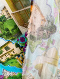 ノスタルジックな風景とスミレの花を組み合わせた柄ショールです。
