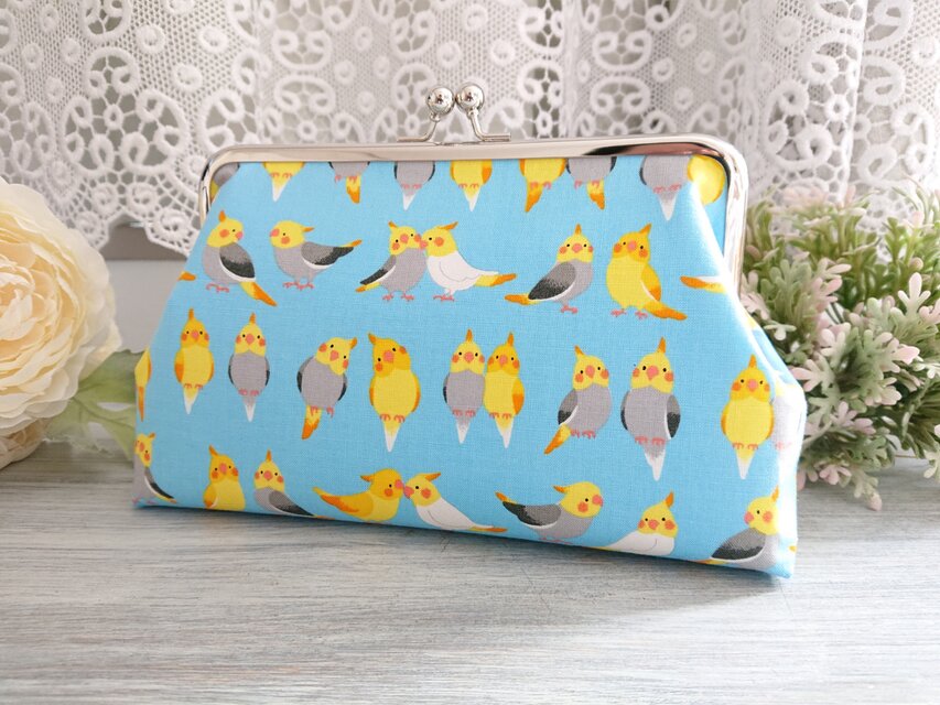 ◆【売り切れ】【再販2】モコモコオカメインコのがま口ポーチ*鳥バードペット旅行やプレゼントに
