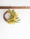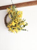 畑で自家栽培しているミモザをドライにした、素朴カジュアルなミモザとユーカリのハーフリースです!