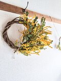 自家栽培ハーブのミモザとユーカリの立体的な素朴ハーフリース♪