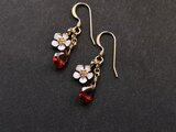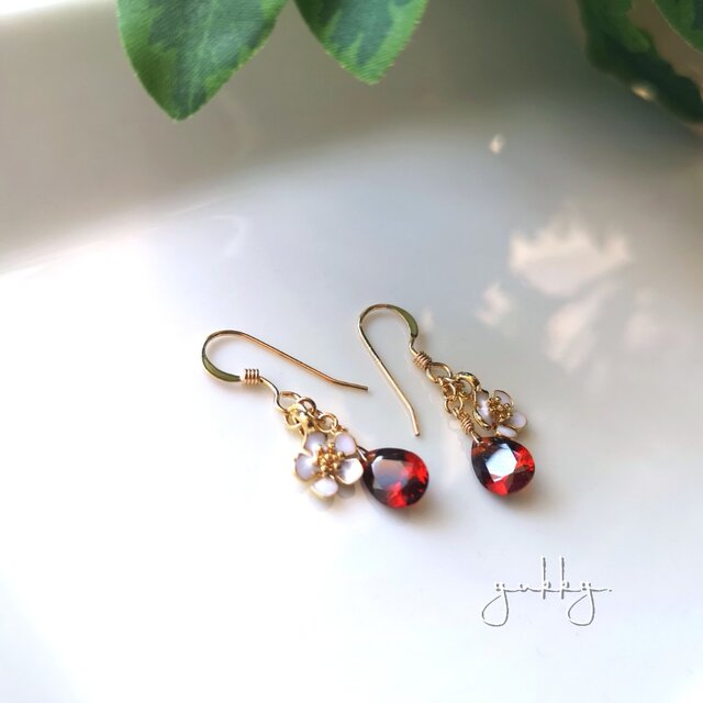 春/新作/忘れな草/花/ガーネット/赤/ペアシェイプ/夏/初夏/しずく/ギフト/プレゼント/ゴールド/イヤリング/14kgf/ピアス/ノンホールピアス