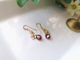 ガーネットのカラーがシックな大人色で、全体的に小ぶりの作品ですが、可愛らしいシンプルなピアスです。
