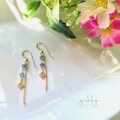 春/新作/ブルー/サンタマリア/アクアマリン/ボタンカット/ダイヤ/チェーン/3月/ギフト/プレゼント/ゴールド/イヤリング/14kgf/ピアス/ノンホールピアス