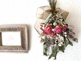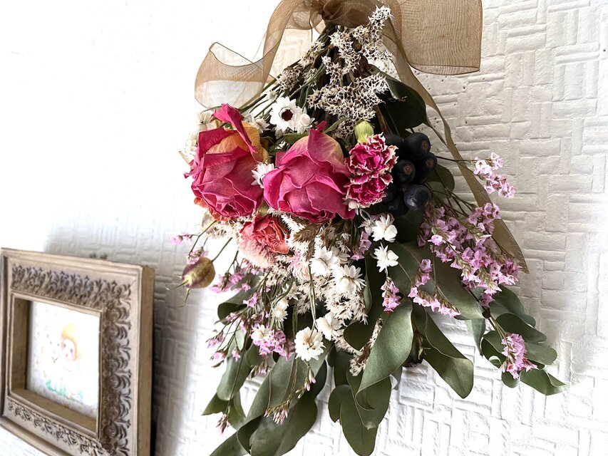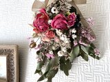 アンティークな雰囲気のローズやカーネーションのドライフラワーを使った
