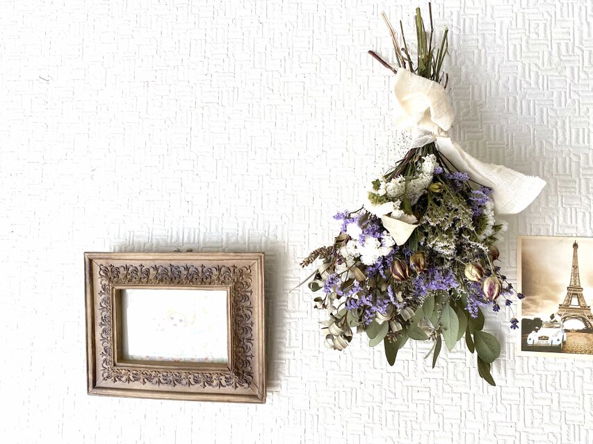 すべてナチュラルなドライフラワーを使用していますので時間とともに退色していきます、それもあわせてお楽しみいただければと思います。