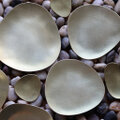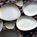 真鍮でつくった、ふぞろいのかたちのお皿です。