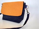 倉敷帆布と岡山生デニムのバイカラーミニショルダーバッグ-オレンジ