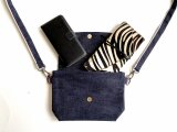 こちらは倉敷帆布と岡山デニムのバイカラーミニショルダーバッグになります。