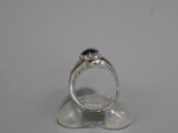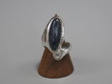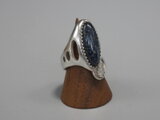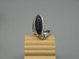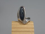 縦に細長いリングで、色が対照的な二石の使い方も個性的です。