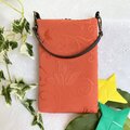 表の布は花の織り模様がキレイな夕焼け色の着物生地(シルク)を使用しています。