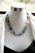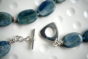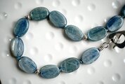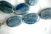 長さ20mm、横幅15mmのオヴァール型カイヤナイトをシルク糸で結びながらつないでいったネックレスです。