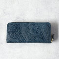 永久保証 オール 栃木レザー ペイズリー型押し ラウンドファスナー ロングウォレット DIEGO ネイビー 長財布