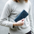 ●湾曲したシルエットが手に馴染み、普遍的な長財布にアクセントを与え、持つ人の心を躍らせてくれます。