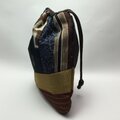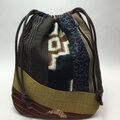 縞木綿、紬、絹物を用いて作った巾着バッグです。