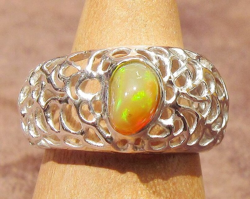 遊色効果の発色が強いオパールをSV925の枠に留めた指輪です。