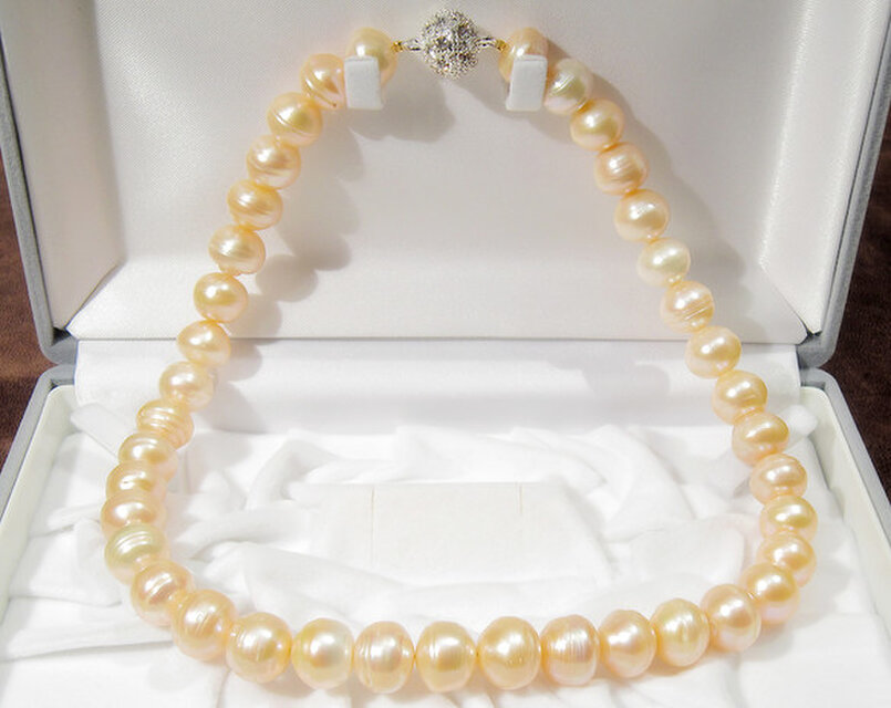 大粒で照りも強い、ナチュラルカラーの本真珠(淡水)を使ったネックレスです。