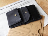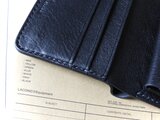 ・イタリアンレザー(アリゾナ)を使った二つ折り財布です。角が丸みを帯びた型で、メンズ過ぎず男女共にお使いいただけるデザインです♪ロウ引きした麻糸で総手縫いで仕立てたお財布です。