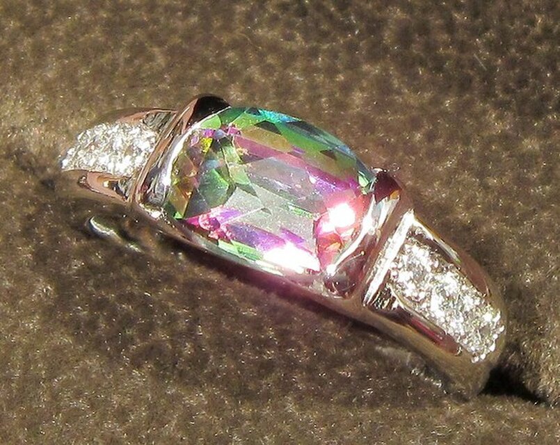 ミスティック・トパーズは、カラーレスのトパーズ(天然石)に、専門の方法で金属を薄くコーティングしました石です。