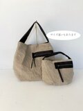 ●ナチュラルなリネンにブラックの馬革コンビでカッコよく引き締めてくれます。
